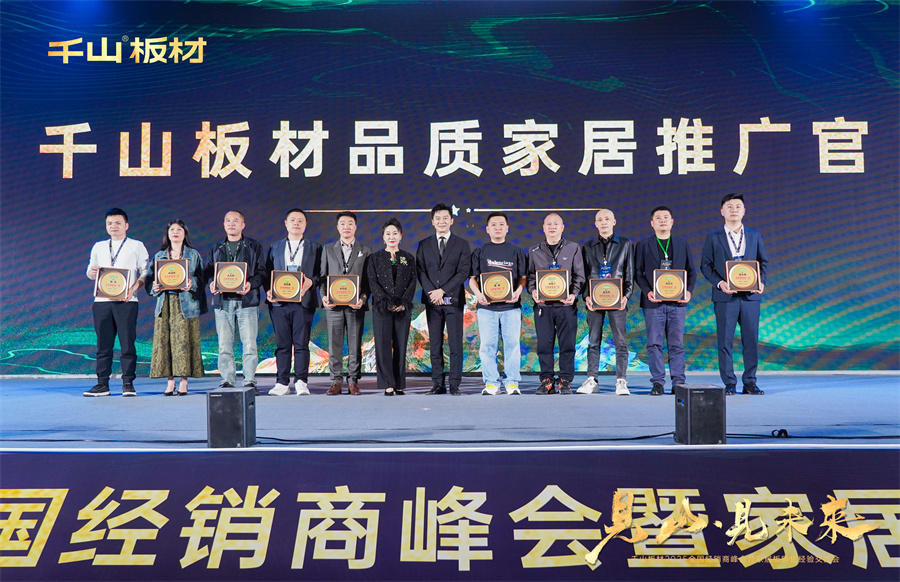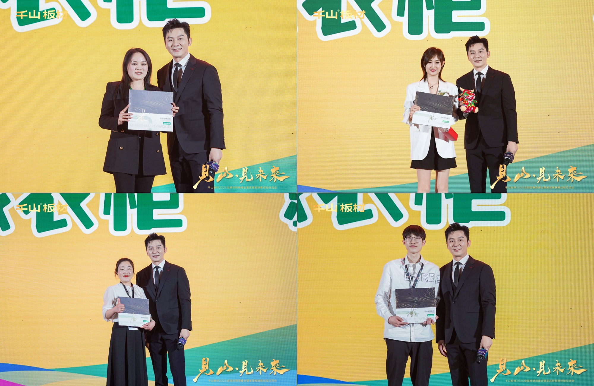 劉董為李晨先生授予“品質(zhì)家居體驗官”,同時為十位在千山板材銷售領(lǐng)域表現(xiàn)卓越的經(jīng)銷商授予了“品質(zhì)家居推廣官”榮譽(yù),不僅是對他們過去一年里在提升家居品質(zhì)、推廣優(yōu)質(zhì)板材方面所做出杰出貢獻(xiàn)的肯定,也是對他們未來繼續(xù)引領(lǐng)家居潮流、傳遞品質(zhì)生活的期待與鼓勵。
