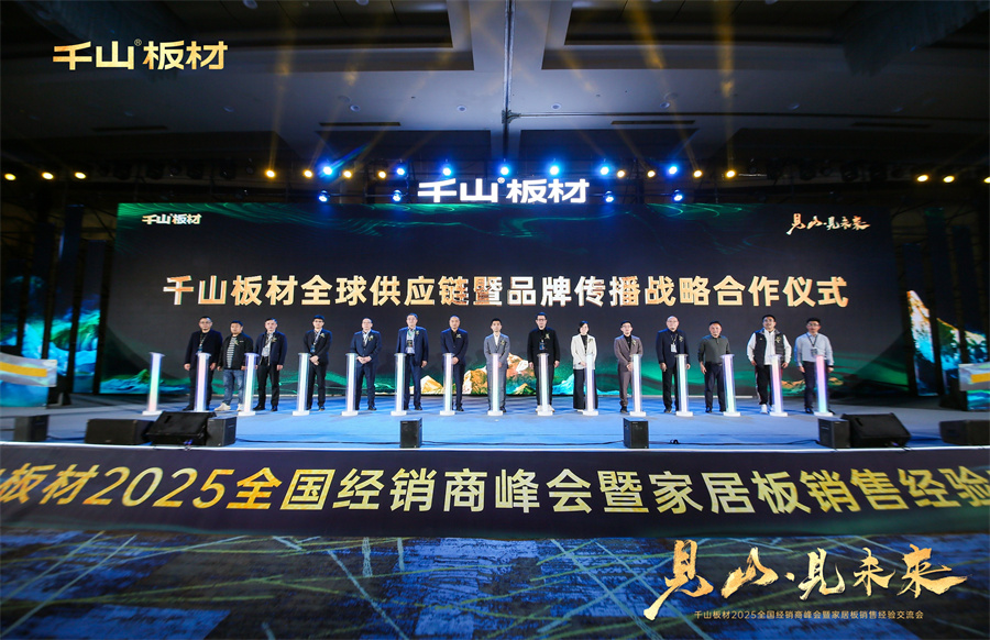品質(zhì)為基,聲量為翼!在堅守匠心的同時,千山板材正以雷霆之勢開啟品牌傳播的新篇章!千山集團(tuán)副總經(jīng)理王松、千山集團(tuán)副總經(jīng)理邱佃樓與優(yōu)秀設(shè)備供應(yīng)商代表、優(yōu)秀品牌傳播媒體代表共同上臺,點亮全球供應(yīng)鏈暨品牌傳播戰(zhàn)略合作的璀璨時刻。