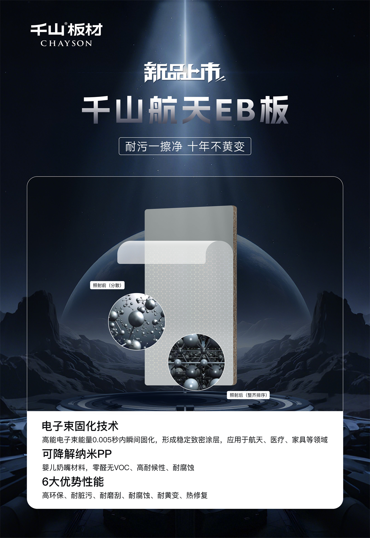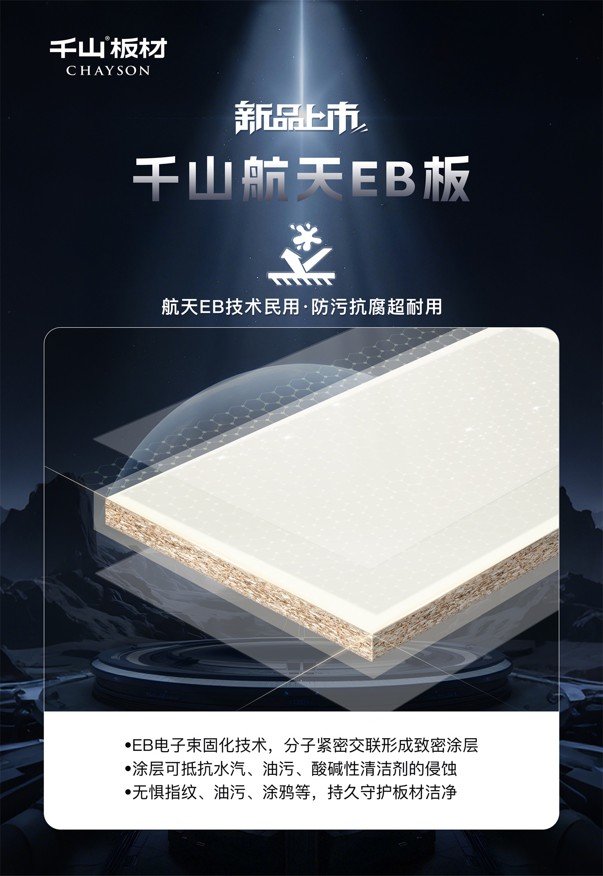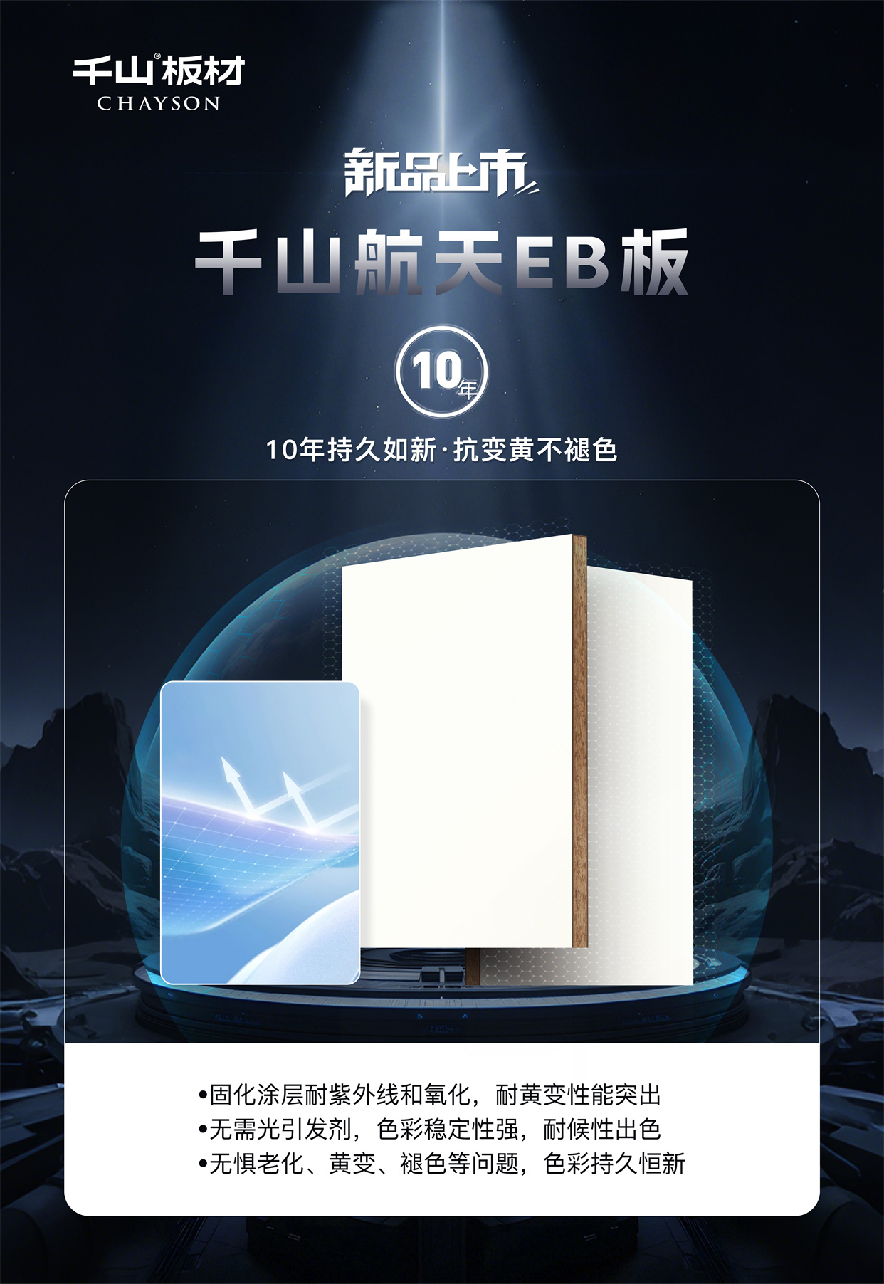 千山航天EB板:耐污一擦凈,十年不黃變!讓黑科技點亮家的奢顏,用高能品質(zhì)守護健康空間,歡迎當?shù)貙Yu店鑒賞咨詢。